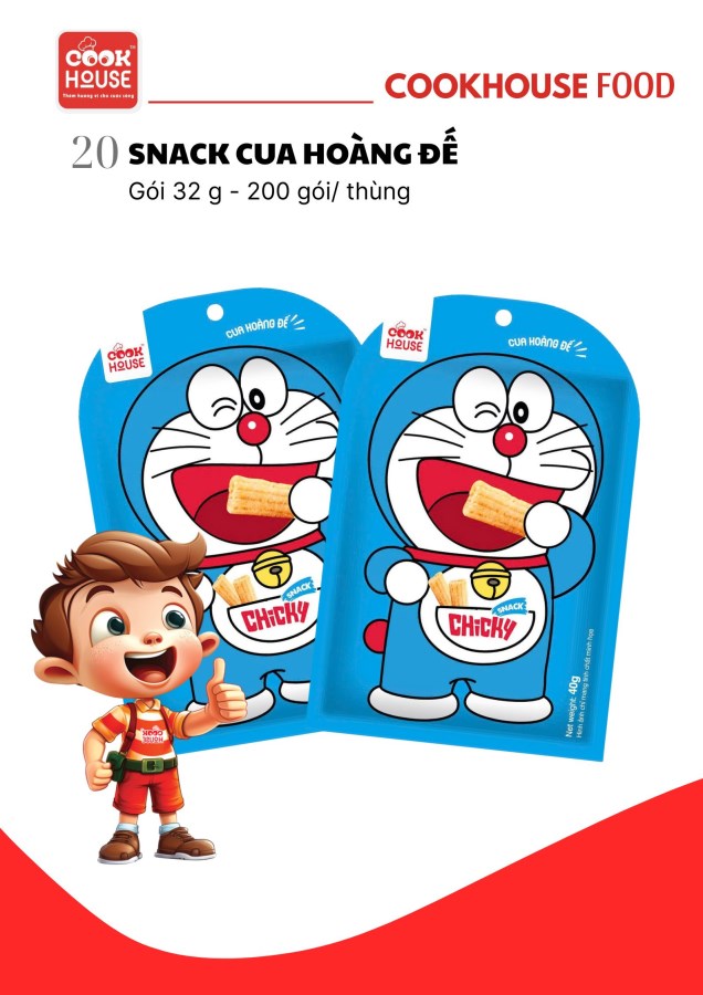 🎉 Đóng gói tiện lợi trong gói 32g, Cookhouse Snack Cua Hoàng Đế là lựa chọn hoàn hảo cho những buổi tiệc nhỏ, dạo chơi cùng bạn bè hoặc thậm chí là để thưởng thức một mình. Và với 200 gói/1 thùng, bạn sẽ luôn có đủ số lượng để chia sẻ với mọi người xung quanh mà không cần phải lo lắng về việc hết hàng.